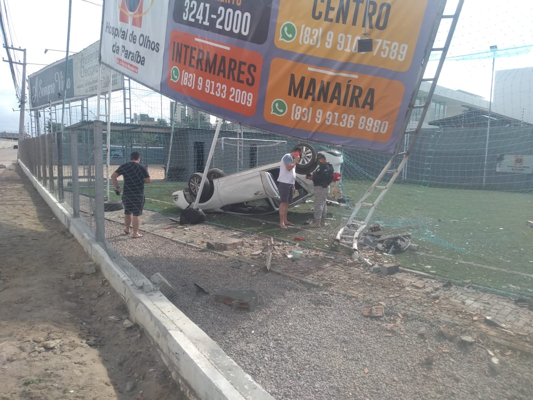 De acordo com informações obtidas pelo ClickPB, o motorista perdeu o controle do veículo, destruiu dois muros e invadiu a quadra, danificando o suporte de um outdoor.