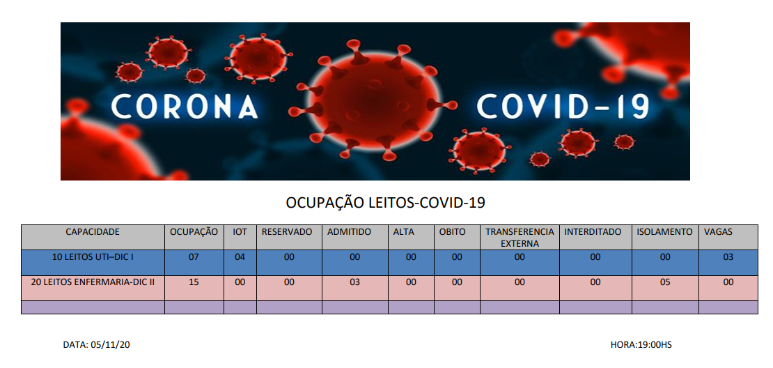 Dos leitos de enfermeira 15 estão ocupados e mais cinco pessoas estão no isolamento da enfermaria. Já os de UTI, sete ocupam os leitos, oferecendo ainda três vagas disponíveis.