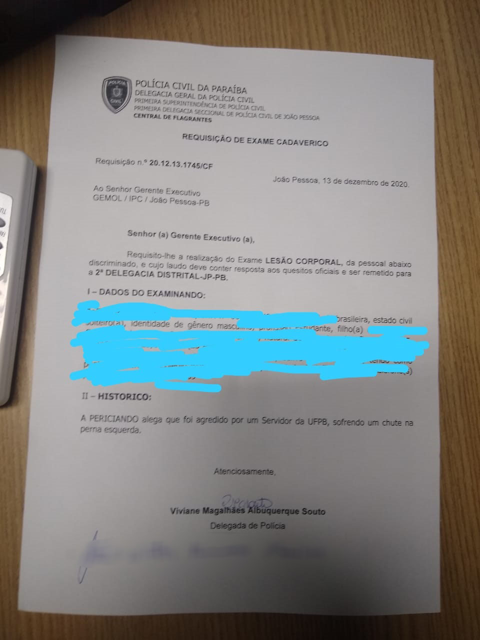 Após o fato, o professor e dois estudantes foram à Central de Flagrantes da Polícia Civil, na Capital, e registraram boletins de ocorrência por agressão, ameaça e assédio moral.