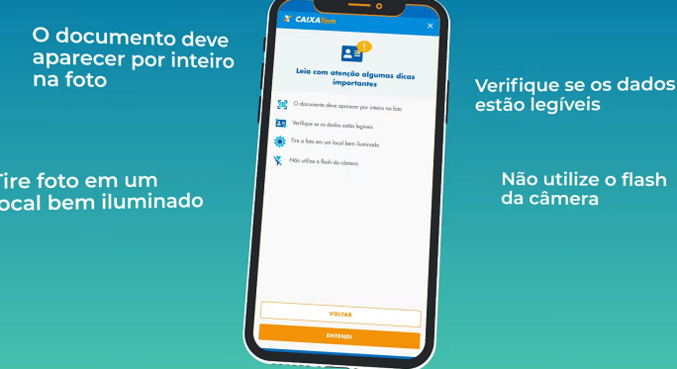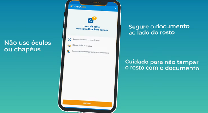 23) Confira as instruções para tirar a selfie com o documento (não use óculos ou chapéus, segure o documento ao lado do rosto e tome cuidado para não tampar o seu rosto com o documento)