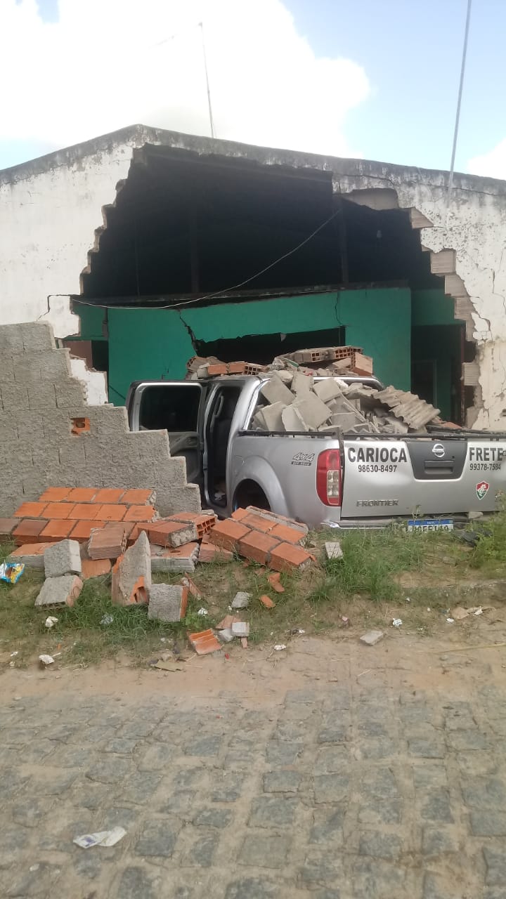 O veículo pertencente ao senhor conhecido popularmente como Carioca do Frete, comprometeu toda a estrura de um dos comodos da casa, abrindo um grande buraco. Três pessoas que estariam na casa sairam ilesas e o condutor do veículo que também não se feriu.