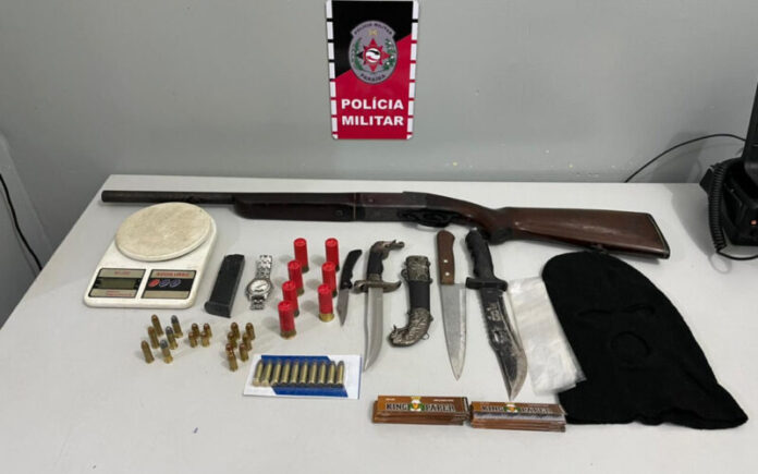 A Polícia Militar apreendeu uma espingarda, 34 munições de quatro calibres diferentes, facas e uma balança de precisão, nesta sexta-feira (13), em um barraco que estaria sendo usado como esconderijo de criminosos, na comunidade Maria Rita, na cidade de Lucena.