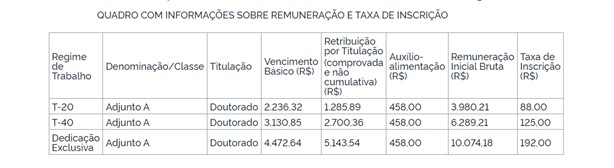 Confira a remuneração e taxa de inscrição: