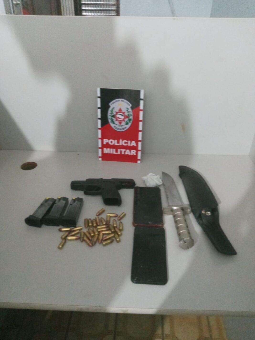 Após efetuarem várias diligências as Equipes do CPU, Tático I e Rádio Patrulha de Jacaraú, se depararam de frente ao Banco do Brasil com um carro com as mesmas características também com 04 ocupantes, sendo assim foi feita uma abordagem e buscas minuciosas tanto no automóvel quanto nos Suspeitos, onde foram encontrados um Pistola Tauros G2c calibre .9mm com 03 carregadores e 32 munições. Ao serem questionados sobre onde residiam responderam que eram oriundos do bairro de Mandacaru em João Pessoa e vieram naquela urbe para se vingarem de integrantes de outra facção que teriam matado um de seus comparsas na madrugada (25). Ainda foram encontrados duas facas e 01 celular que tomaram por assalto e uma porção de substância de uma substância análoga a maconha.