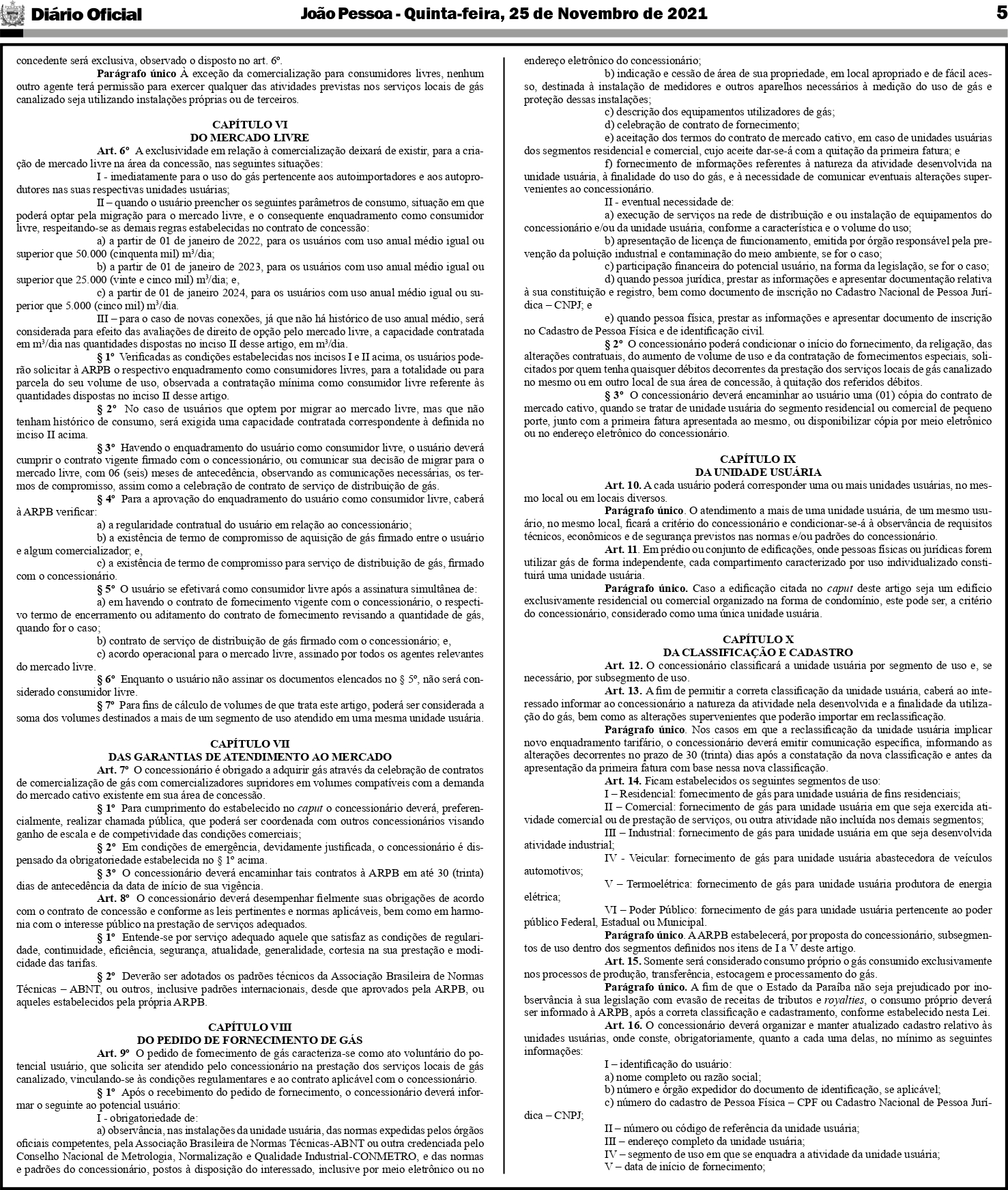Dentre as definições técnicas apresentadas pela lei está o acordo operacional para o Mercado Livre - instrumento contratual de adesão, conforme modelo proposto pelo concessionário e homologado pela ARPB - e deve ser assinado pelos agentes onde são estabelecidas as condições técnicas e operacionais que viabilizam o funcionamento do mercado livre na Paraíba;