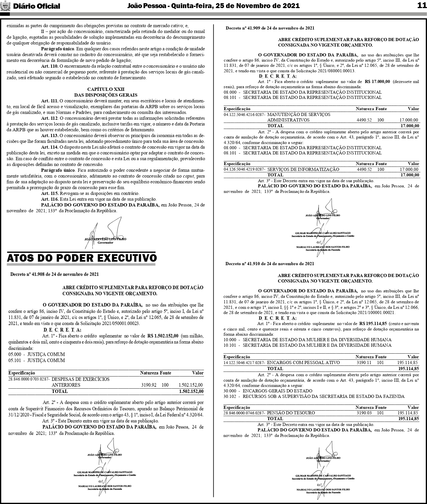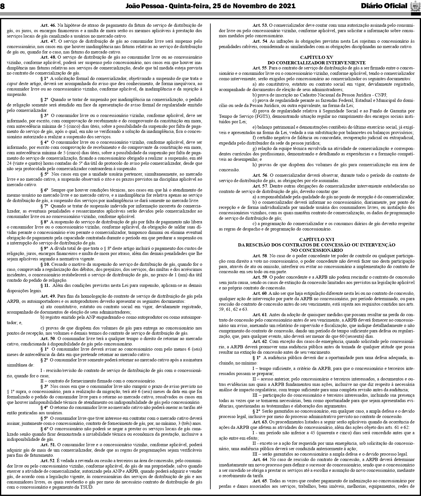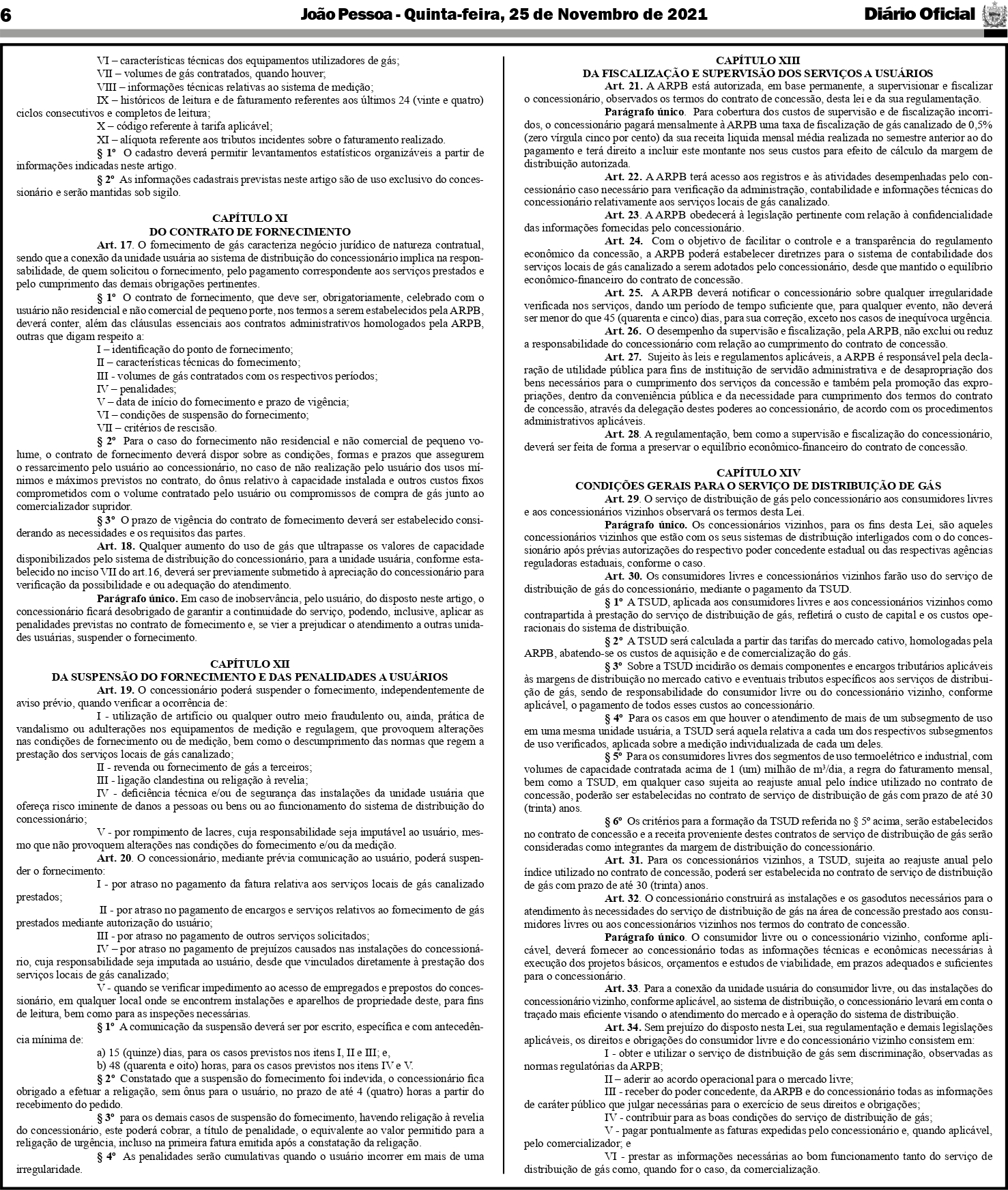 A lei que estabelece normas para a exploração direta, ou mediante concessão, dos serviços locais de gás canalizado na Paraíba foi sancionada pelo governador João Azevêdo (Cidadania). A norma foi publicada na edição desta quinta-feira (25) do Diário Oficial do Estado (DOE).