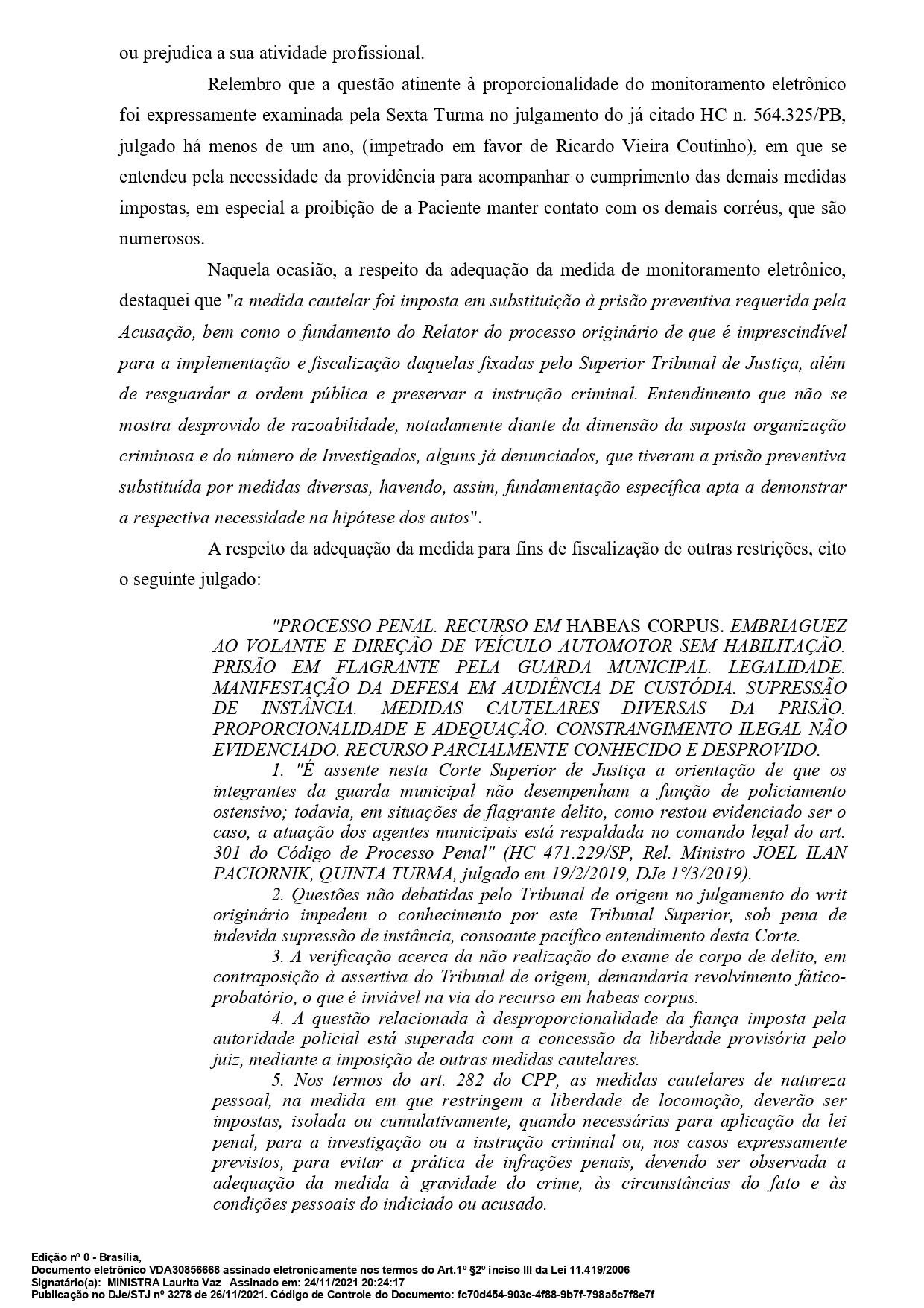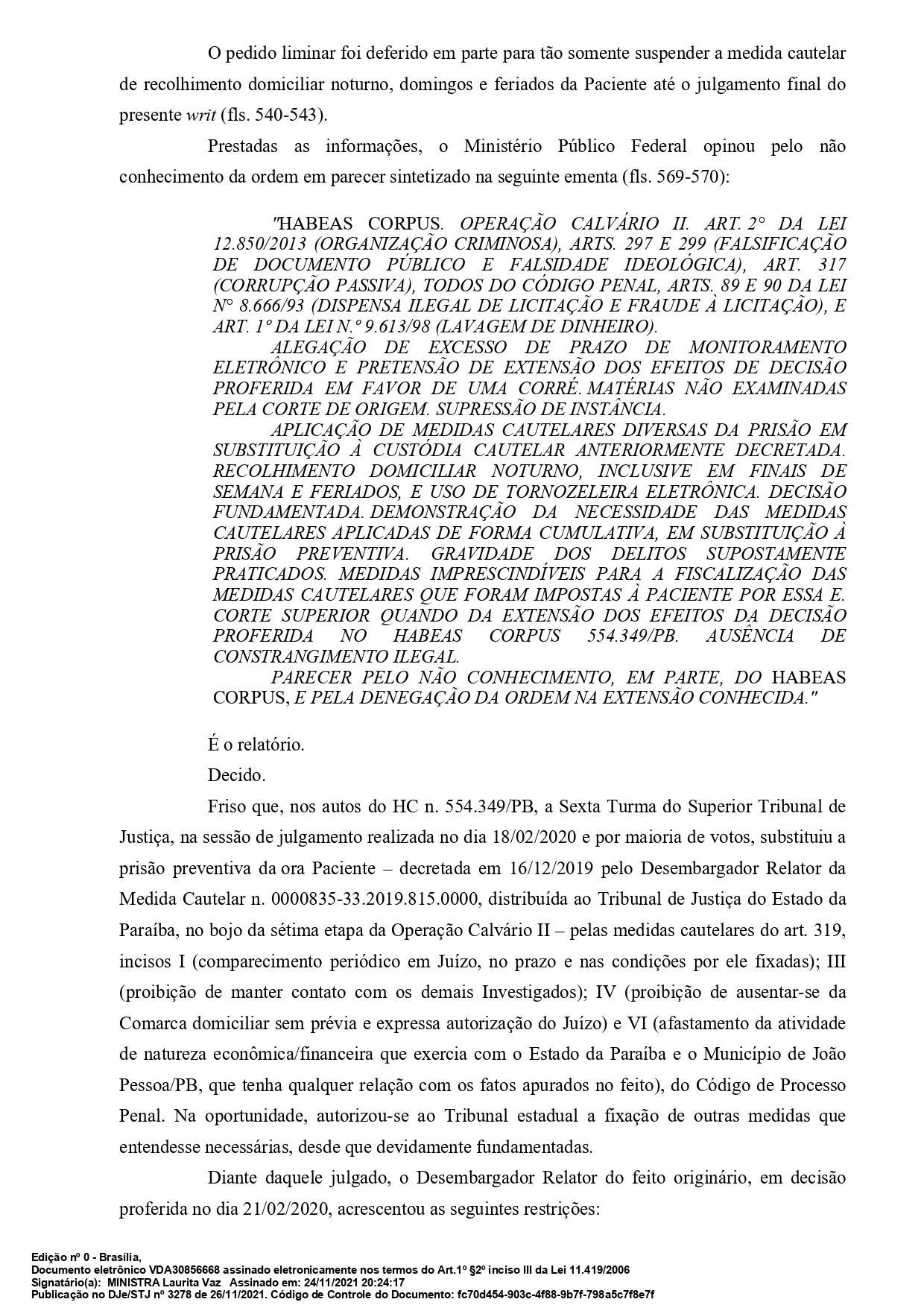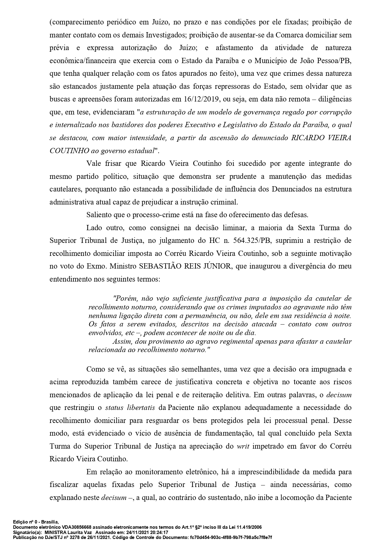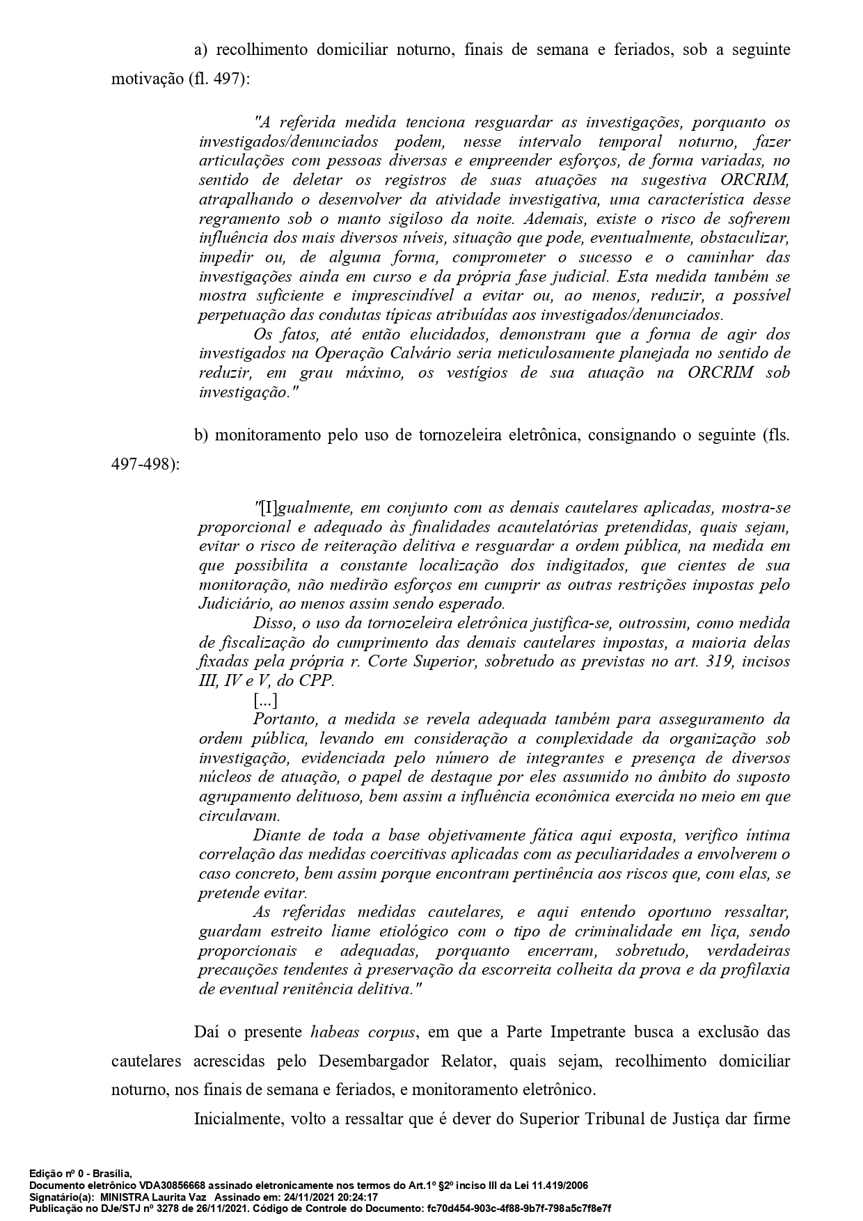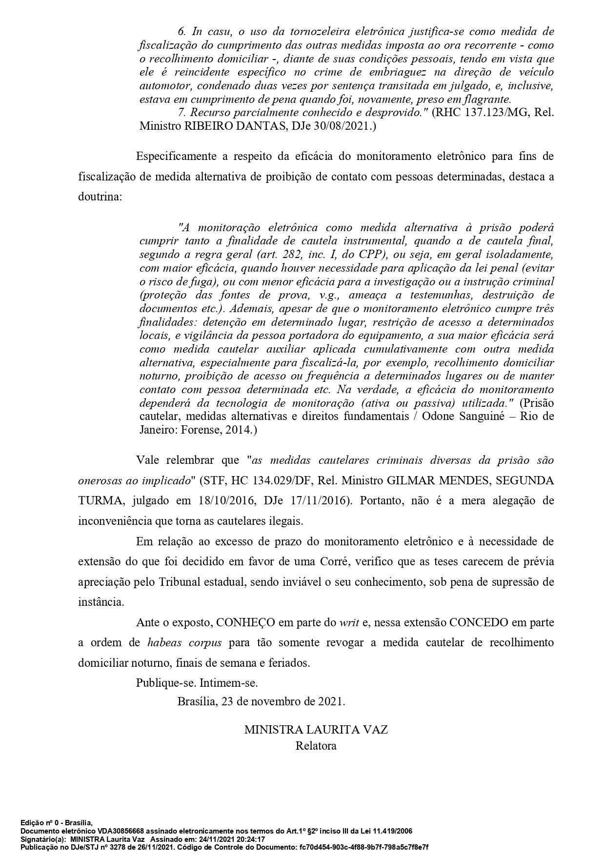 No entanto, de acordo com o documento, a ministra destaca que concede “em parte a ordem de habeas corpus para tão somente revogar a medida cautelar de recolhimento domiciliar noturno, finais de semana e feriados”.