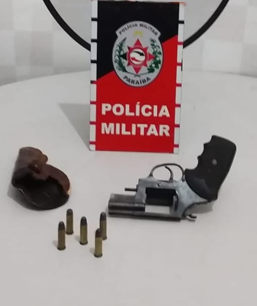 De posse das informações a R/P de Lagoa de Dentro foi até o local e lá às pessoas confirmaram o ocorrido e após diligências conseguiram encontrar e abordar o Acusado de 39 anos e após a busca pessoal foi apreendido com o mesmo um Revólver Rossi calibre .38 com 05 munições intactas.