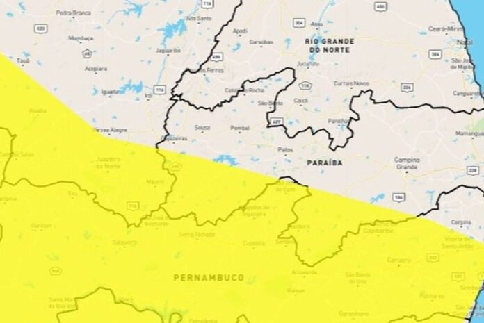 O Instituto Nacional de Meteorologia (Inmet) emitiu uma alerta nesta quinta-feira (25) sobre perigo potencial de chuvas intensas em 93 municípios paraibanos. O aviso é válido a partir das 10h deste sábado (25) até 10h deste domingo (26).