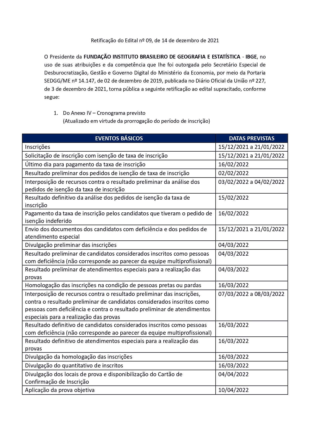 Como apurado pelo ClickPB, por conta da prorrogação do prazo, a FGV também publicou retificação no cronograma dos processos seltivos. Além da mudança na data de inscrição, também foram alteradas a data das provas e a divulgação dos resultados que agora estão previstos para 20 de maio de 2022.