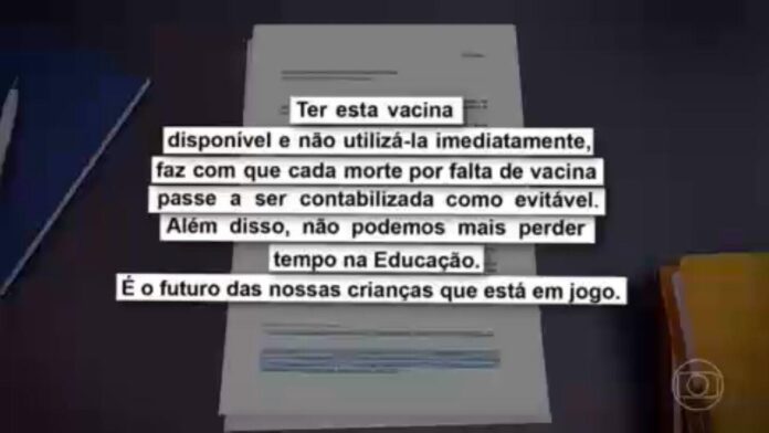 Depois de várias manifestações da comunidade científica, nesta quarta-feira (29) foi a vez de secretários de Educação cobrarem do governo. Numa carta, enviada ao ministro Marcelo Queiroga, eles fizeram um apelo para a imediata aquisição e distribuição de vacinas contra a Covid destinadas às crianças de 5 a 11 anos de idade.