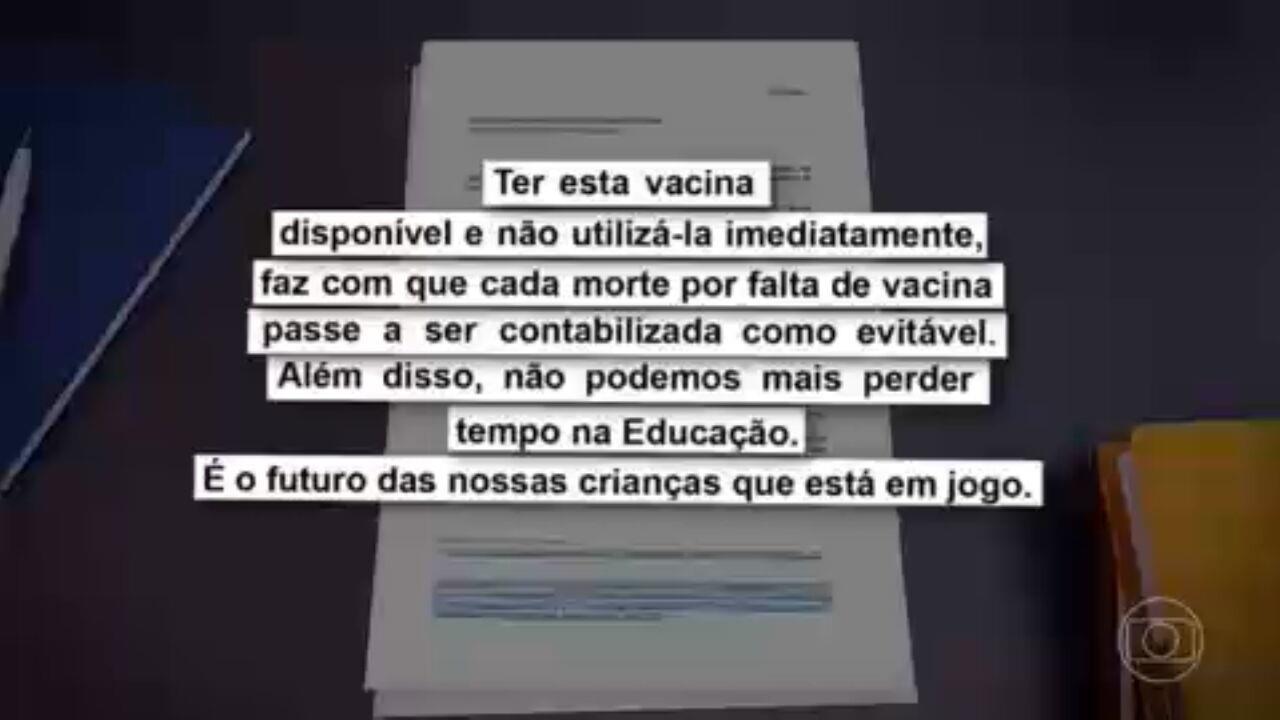Em carta enviada ao ministro da Saúde, Marcelo Queiroga, eles defenderam a imunização antes da volta às aulas e criticaram a decisão do governo de realizar consulta pública sobre a vacinação.
