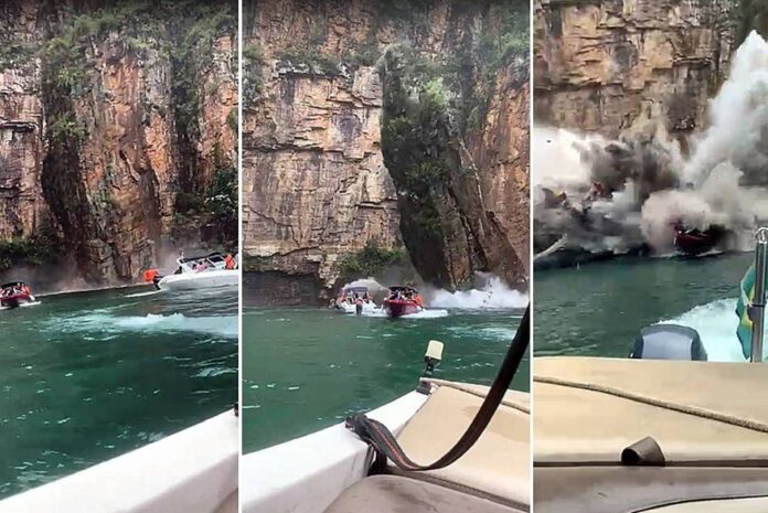 O primeiro chamado sobre o acidente ocorreu pouco após às 12h30. Um vídeo que circula pelas redes sociais mostra o momento em que uma grande rocha se desprende e atinge em cheio lanchas que estavam lotadas de turistas.