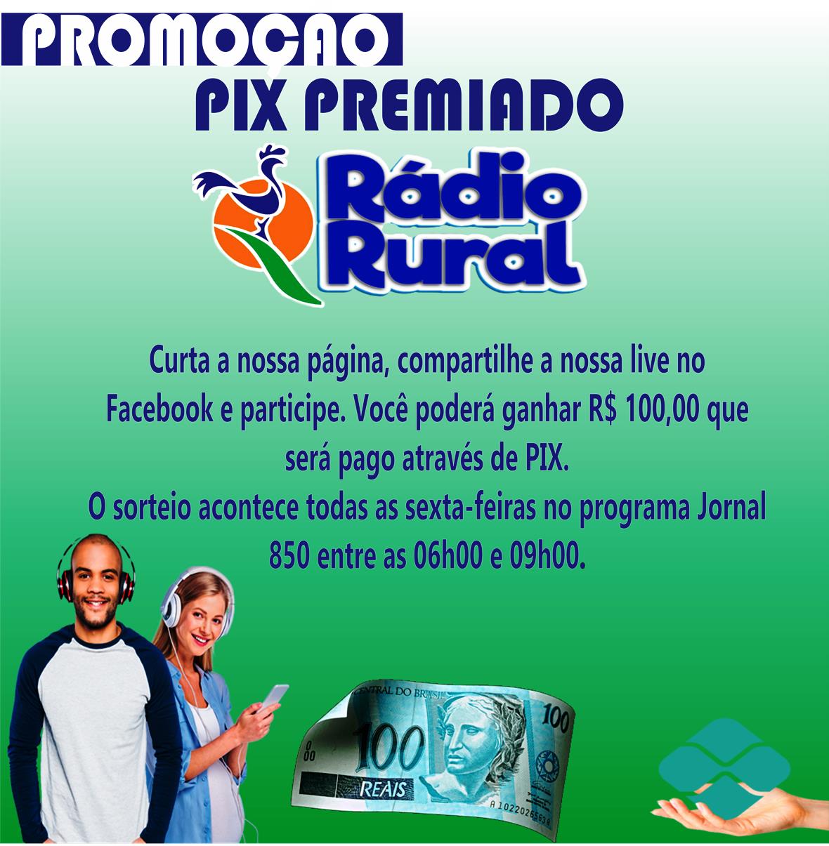 A Rádio Rural de Guarabira estará sorteando todas as semanas R$ 100,00 via pix entre seus ouvintes que acompanha a emissora através das redes sociais.