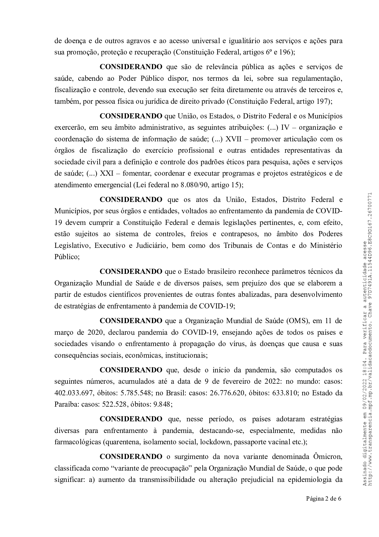 A orientação dos Ministérios Públicos ocorre em meio ao aumento de casos de Covid-19, principalmente por conta da circulação da variante Ômicron. A adoção dessas duas medidas deve ser feita, no prazo estipulado pelos órgãos, pelo Governo do Estado junto com a “equipe técnica e jurídica da administração estadual”. Eles deverão analisar esse ofício assinado ontem (09).