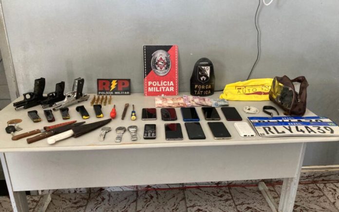 A Polícia Militar prendeu, na tarde desta terça-feira (22), quatro suspeitos de assaltarem um posto de combustível no distrito de Boqueirão de Gurinhém, após perseguição que terminou na zona rural entre as cidades de Cajá e Gurinhém. Na fuga, os criminosos chegaram a trocar tiros com os policiais. Com os presos, foram apreendidas três armas de fogo, três facas, vários aparelhos de celular, um veículo e recuperado o dinheiro do roubo.
