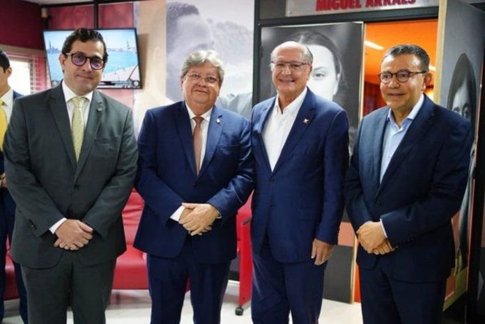 O governador da Paraíba, João Azevêdo, participou nesta quarta-feira (23), da filiação do ex-governador Geraldo Alckmin ao Partido Socialista Brasileiro (PSB). A filiação aconteceu na sede da Fundação João Mangabeira, em Brasília.