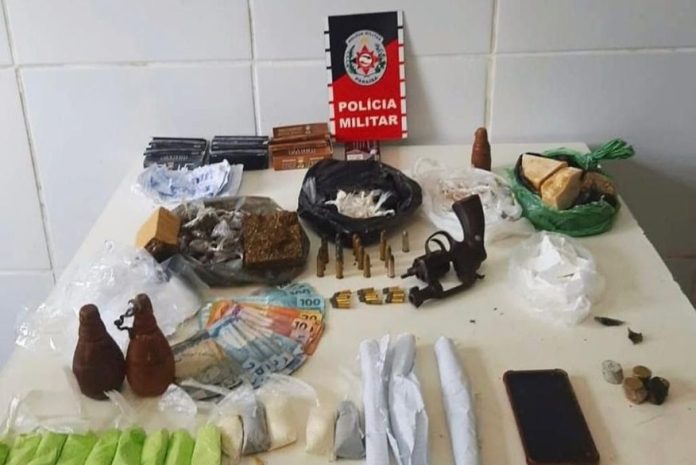 Na investigação, a PM prendeu o homem no local e apreendeu 121 pedras pequenas e mais 1kg de crack, 142 embalagens de maconha, 76 papelotes mais 300g de cocaína, um revólver calibre 38, balança de precisão, material para embalagem dos entorpecentes, além de explosivos entre outros itens.