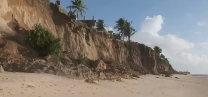 Carlos ainda reforça o perigo causado pela erosão da falésia e como pode causar riscos à vida de turistas e banhistas que frequentam o local.