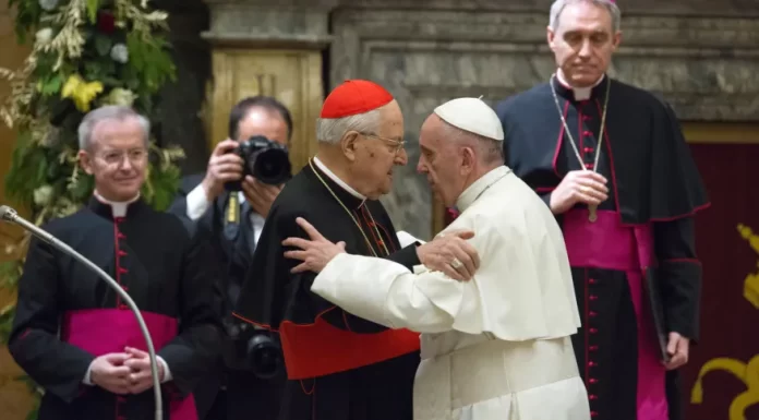 “Lembro-me do seu trabalho diligente ao lado de tantos de meus antecessores, que lhe confiaram importantes responsabilidades na diplomacia do Vaticano, até o delicado cargo de secretário de Estado”, disse Francisco.