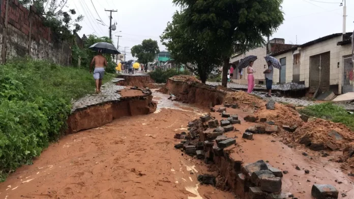 O grande volume de chuva provocou transbordamento de lagoas de captação de águas pluviais, alagamento de imóveis “com perdas de pertences dos moradores”, crateras abertas, redes de drenagem afetadas, deslizamentos em áreas de encostas, queda de árvores e casas interditadas por do risco de desabamento.