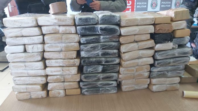 Os policiais encontraram cerca de 100 tabletes de tamanhos variados com maconha, quase cinco quilos de crack, mais de quatro quilos de cocaína, além de três balanças de precisão e uma máquina de cartão de crédito, provavelmente utilizada para movimentação do tráfico.