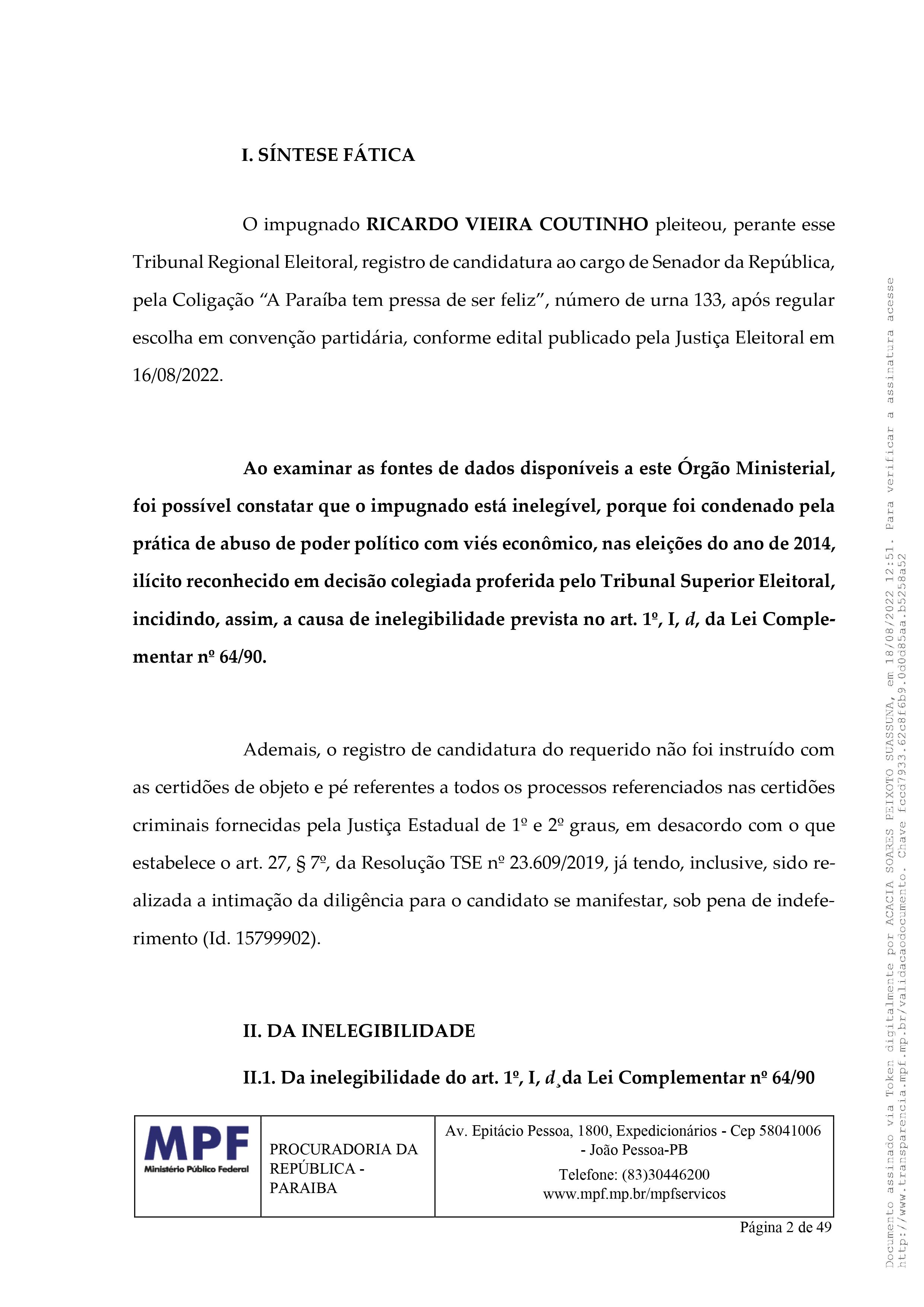 Confira a impugnação do MPE contra Ricardo Coutinho, na íntegra: