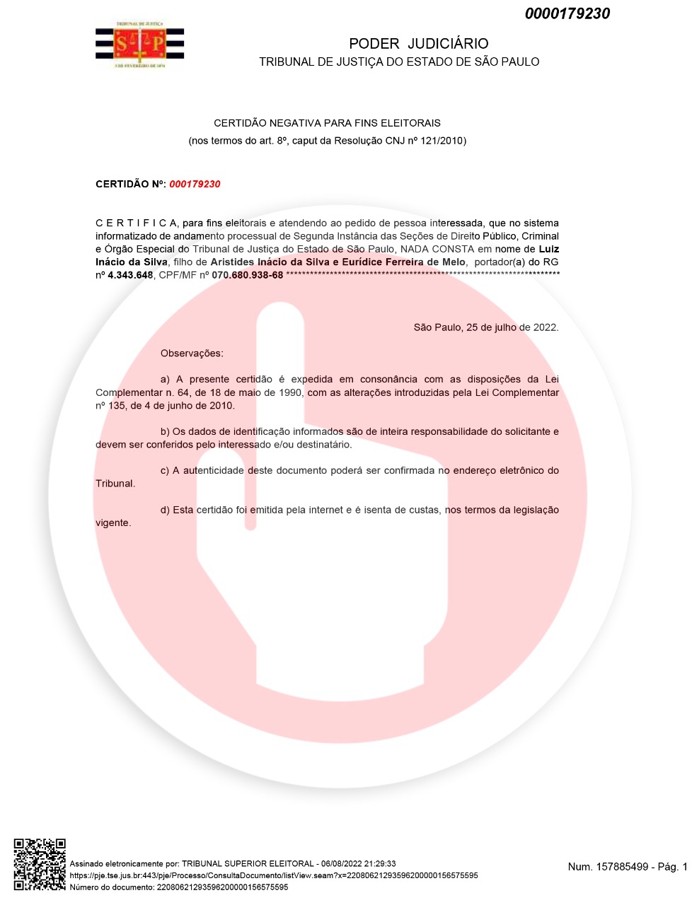 A Procuradoria Eleitoral cobrou de Lula as certidões de “nada consta” criminal sob ameaça de impugnar candidatura. As certidões criminais já foram entregues ao TSE e a apresentação dos documentos é essencial para que Lula não seja enquadrado na Lei da Ficha Limpa, por eventuais condenações em segunda instância.