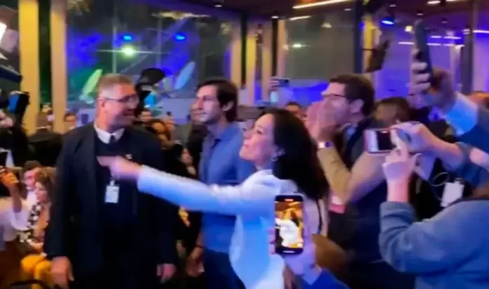 Enquanto os presidenciáveis debatem nos estúdios da TV Bandeirantes, na sala reservada aos convidados das campanhas o clima é de confronto. Apoiadores de Bolsonaro e de Lula alternam gritos de “mito” e “genocida”. O debate vetou a presença de plateia no estúdio.
