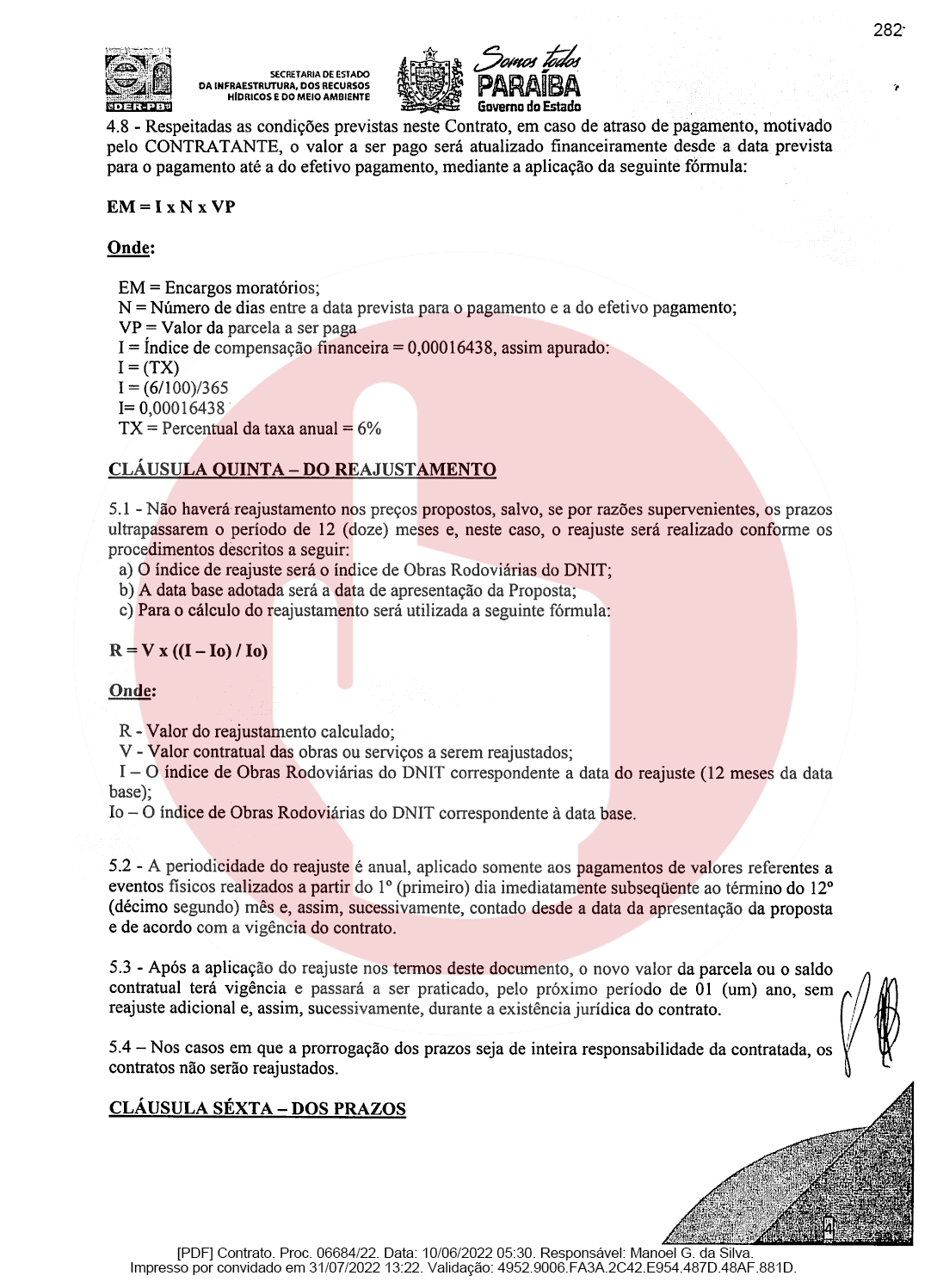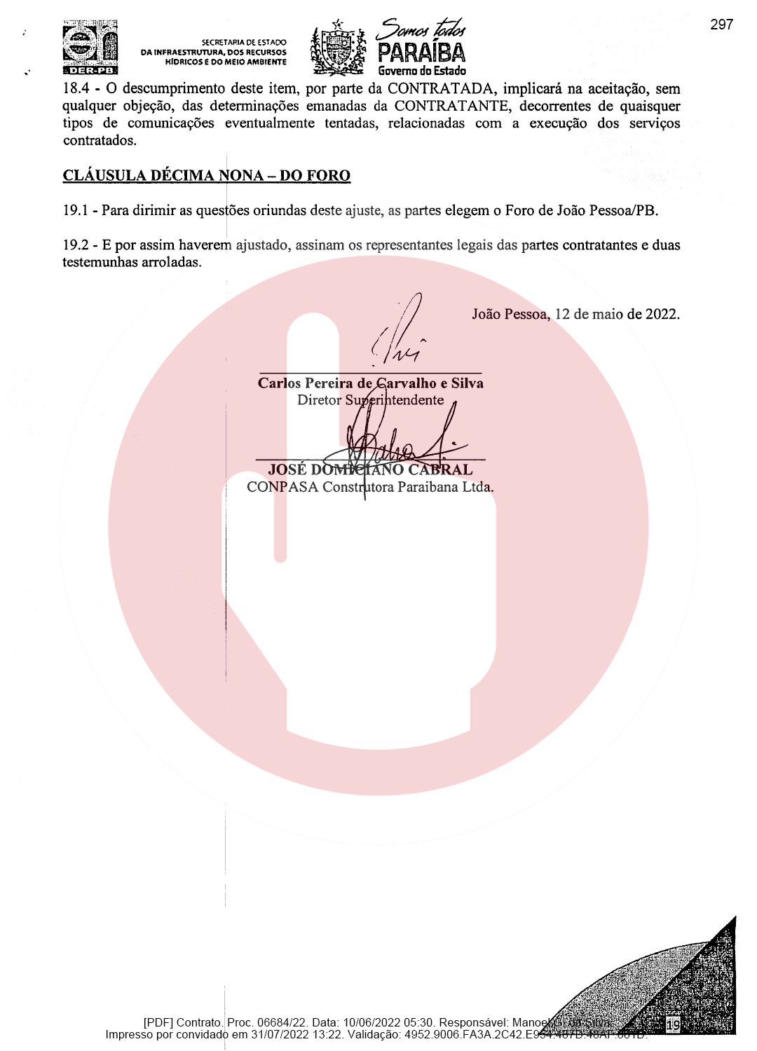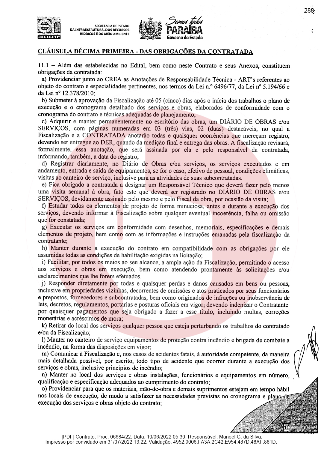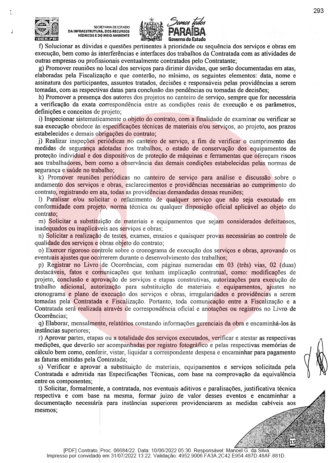 Ainda de acordo com o documento, a empresa de Domiciano Cabral foi contratada para executar as obras de pavimentação da rodovia PB-382, que é o trecho entre as cidades de Serra Grande e São José de Piranhas. Segundo o documento, a empresa terá que pavimentar 23,66 km conforme as especificações técnicas e os demais elementos que constam no Termo de Referência ou Projeto Básico.