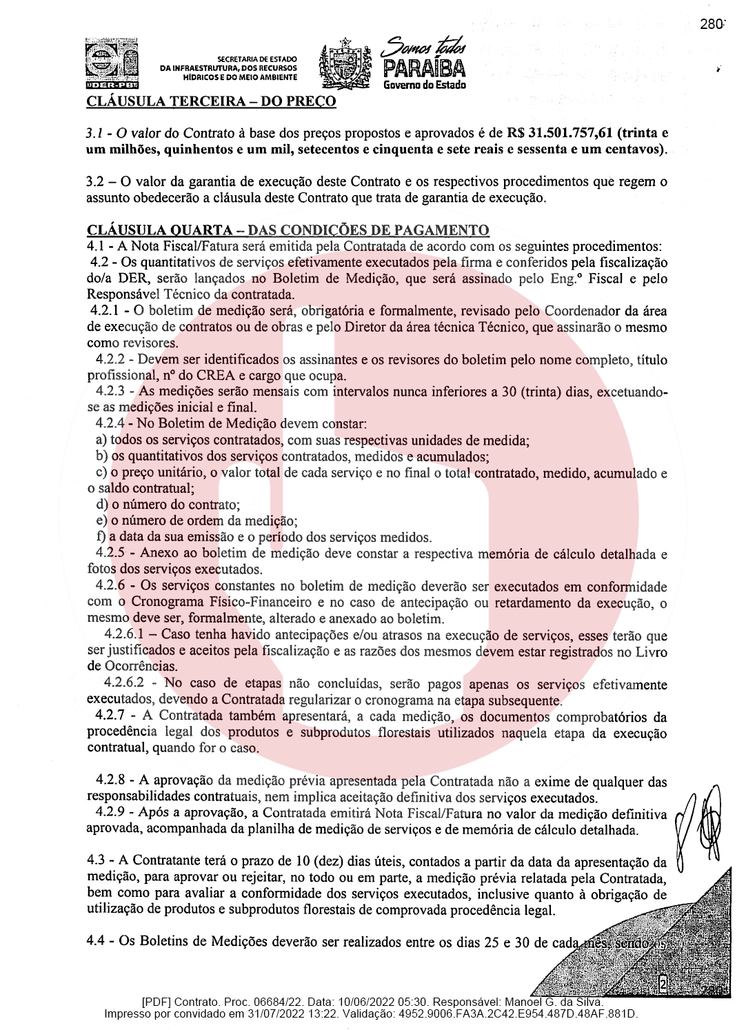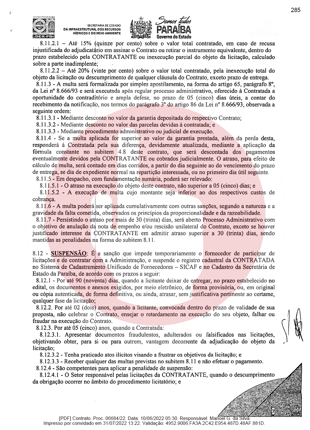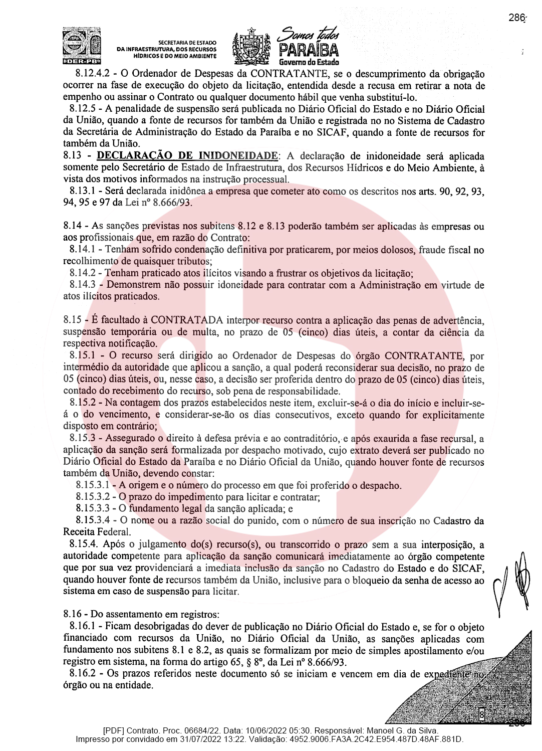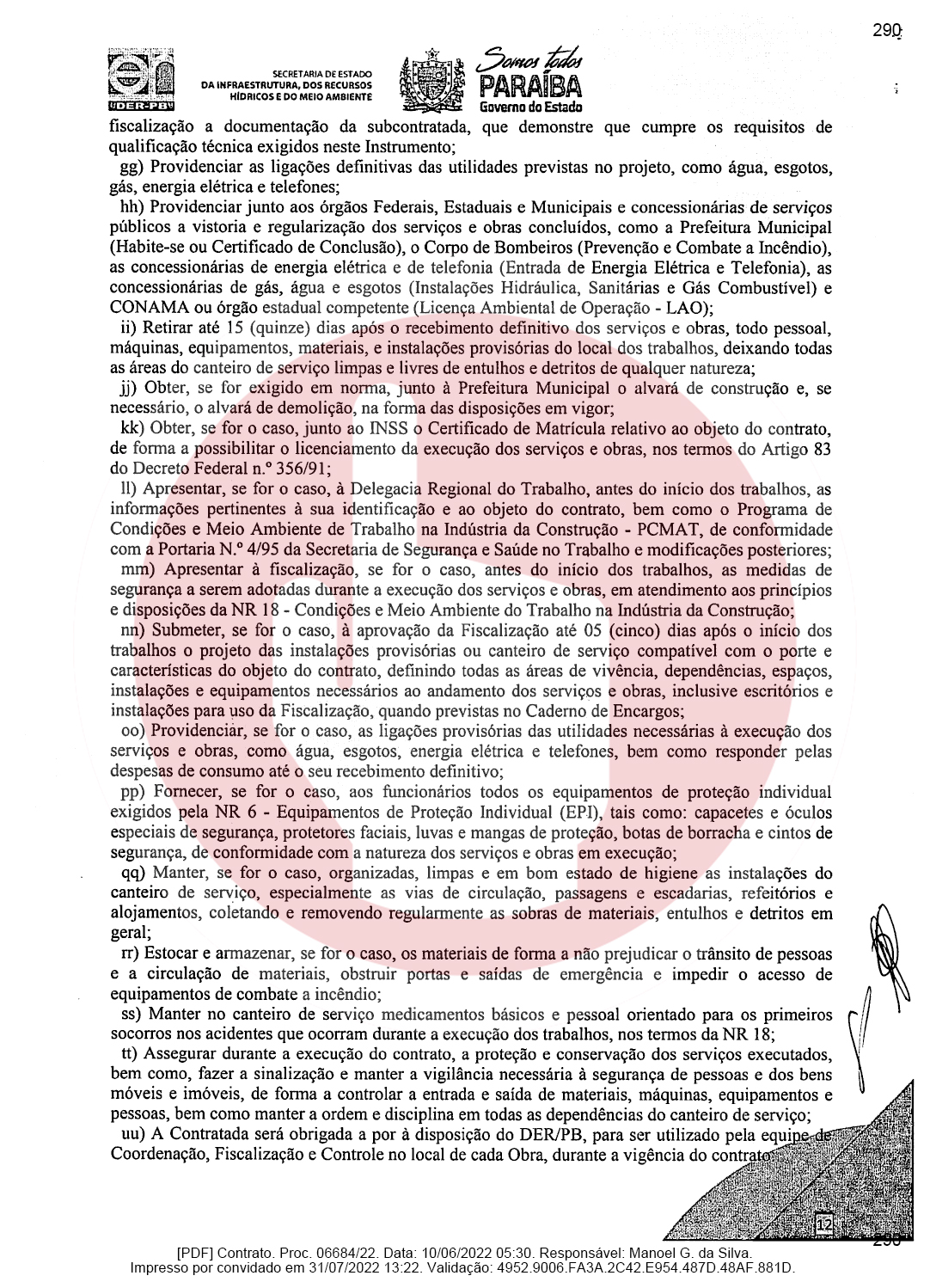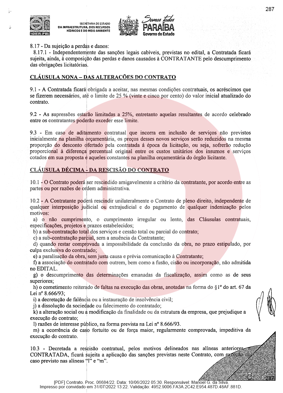 Ainda de acordo com o documento, a empresa de Domiciano Cabral foi contratada para executar as obras de pavimentação da rodovia PB-382, que é o trecho entre as cidades de Serra Grande e São José de Piranhas. Segundo o documento, a empresa terá que pavimentar 23,66 km conforme as especificações técnicas e os demais elementos que constam no Termo de Referência ou Projeto Básico.