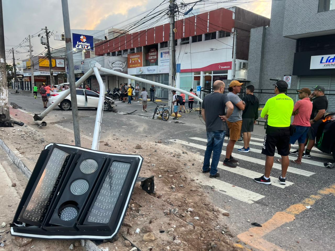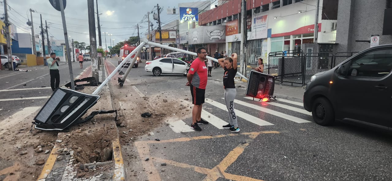 Um acidente envolvendo três veículos destruiu dois semáforos na madrugada deste domingo (18), no cruzamento entre as Av. Senador Ruy Carneiro e Nossa Senhora dos Navegantes, nas proximidades do Mercado de Artesanato, no bairro de Tambaú, em João Pessoa.