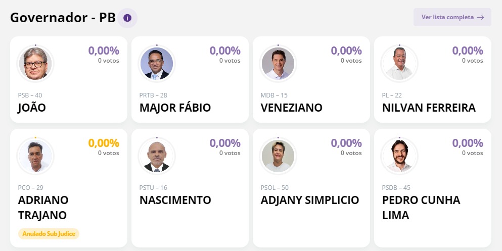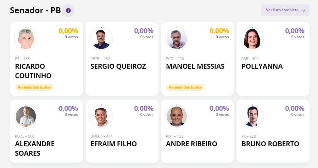 O Tribunal Superior Eleitoral (TSE) disponibilizou o sistema que mostrará a totalização dos votos, no domingo (2). Nele, os nomes de Ricardo Coutinho (PT) e Manoel Messias (PCO), candidatos a senador da Paraíba, além do candidato a governador, Adriano Trajano (PCO), já aparecem com a observação de votos anulados sub judice.