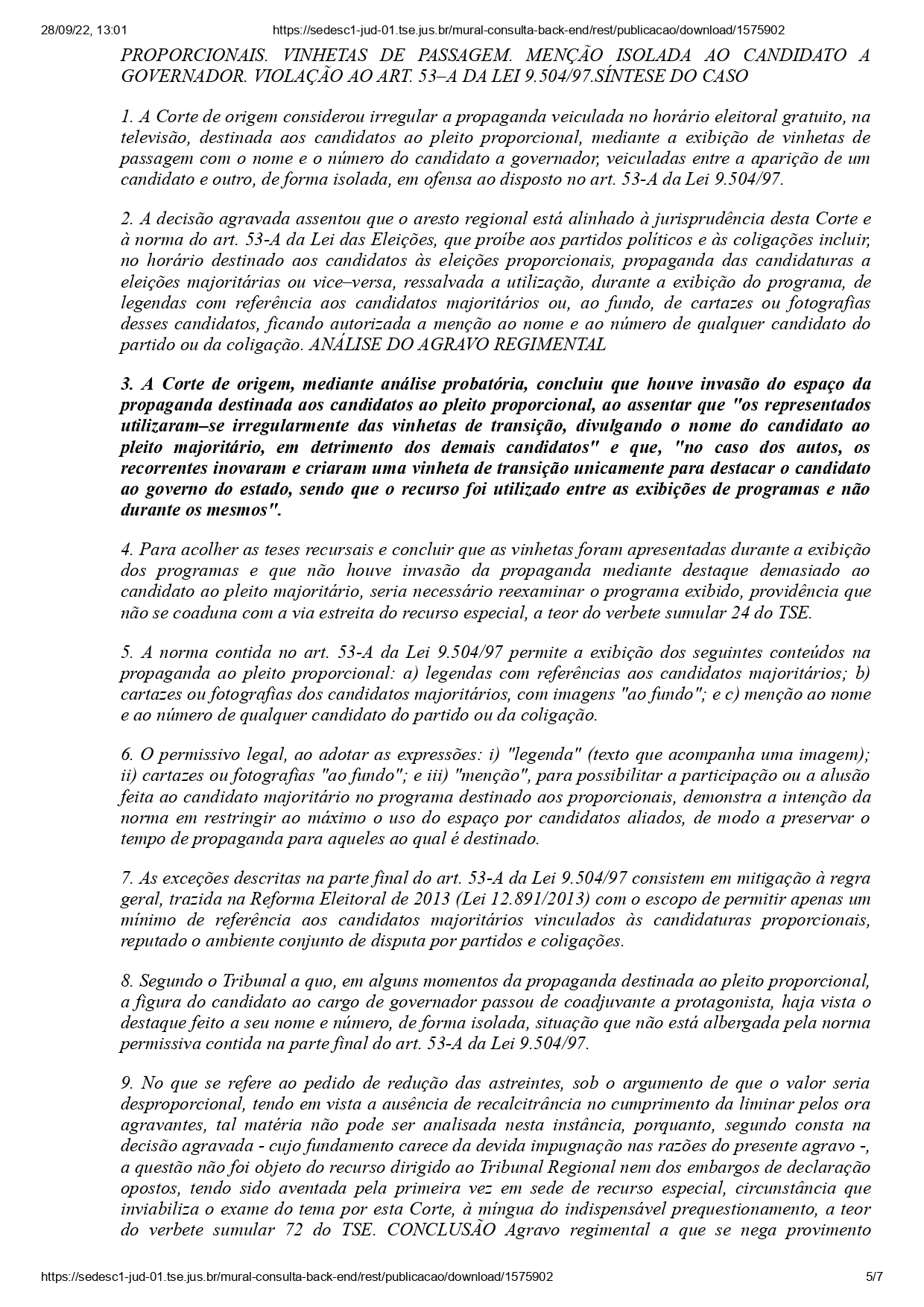 “No dia 7 de setembro de 2022, que os representados veicularam propaganda irregular durante o guia eleitoral da TV que foi ao ar no horário diurno e noturno, consubstanciada em invasão, uma vez que veiculou propaganda eleitoral em favor de candidatura majoritária no horário legalmente reservado às candidaturas proporcionais”, diz trecho do documento.