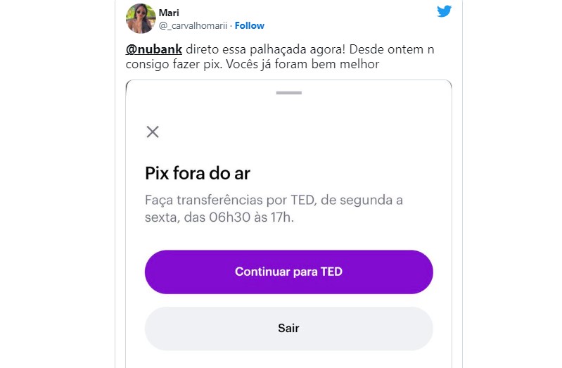 Por volta das 10h40, o Nubank estava entre os assuntos mais falados do Twitter, mas os relatos dão conta de que o problema atinge os principais bancos brasileiros.