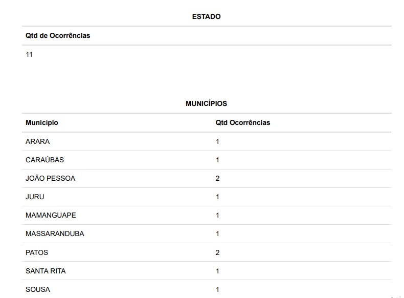 Também foi registrada substituição de urna nas cidades de Arara, Caraúbas, Juru, Mamanguape, Massaranduba, Santa Rita e Sousa.