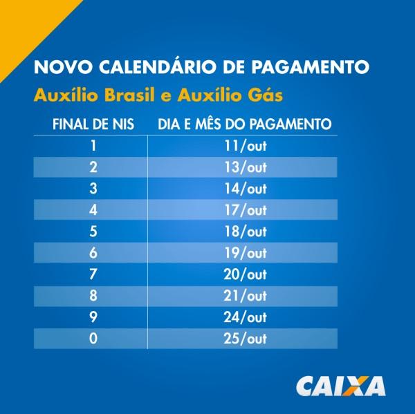 O calendário de pagamento dos auxílios Brasil e Gás do mês de outubro foi antecipado. De acordo com o Ministério da Cidadania, os benefícios previstos para serem pagos no dia 18 serão repassados a partir do próximo dia 11. Os primeiros a receber são os beneficiários com NIS de final 1.