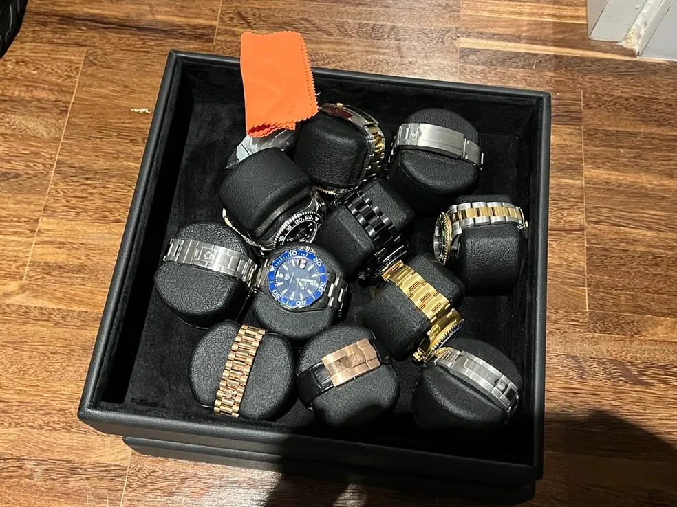 Investigados por fraudes envolvendo criptomoedas no Brasil e no exterior usavam parte do dinheiro para compra de relógios e outros itens de luxo — Foto: Divulgação/Polícia Federal