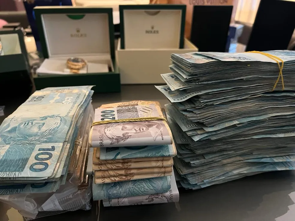 Barras de ouro, dinheiro em espécie, joias, carros e relógios de luxo foram apreendidos pela Polícia Federal (PF), na manhã desta quinta-feira (6), em endereços ligados ao empresário Francisley Valdevino da Silva, conhecido como “Sheik dos Bitcoins”, e a outros investigados.
