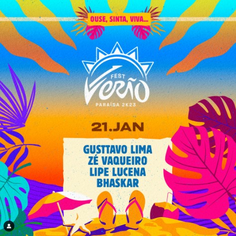 Foi divulgada, nessa quinta-feira (6), a programação do Fest Verão Paraíba 2023. A festa já é conhecida na Paraíba, no Nordeste e em outros lugares do país e acontece no mês de janeiro em uma arena no bairro de Intermares, em Cabedelo, região metropolitana de João Pessoa.