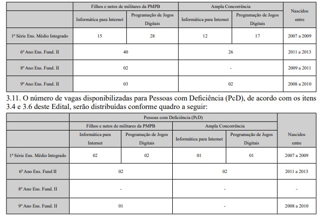 São 60% das vagas serão destinadas aos filhos e netos de policiais militares da PMPB e 40% para ampla concorrência. Os documentos exigidos constam no edital publicado no Diário Oficial do Estado, a partir da página 24.