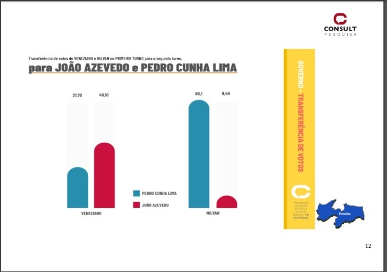 A pesquisa Consult entrevistou 1.600 eleitores da Paraíba, entre os dias 22 e 23 de outubro.A margem de erro é de 2,45% para mais ou para menos. O nível de confiança é de 95%. A pesquisa está registrada sob o código PB-01487/2022.