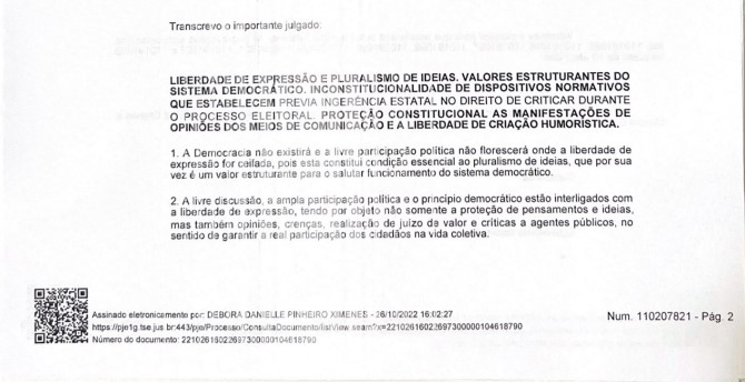 A juíza eleitoral de Crateús, Débora Ximenes, negou o pedido de censura. “A liberdade de imprensa, prevista no Art. 220, da Constituição Federal, é essencial ao Estado Democrático de Direito. Desse modo, em juízo de cognição sumária, entendo pela impossibilidade da liberdade de imprensa sofrer constrições em período eleitoral”, escreveu a juíza na decisão.
