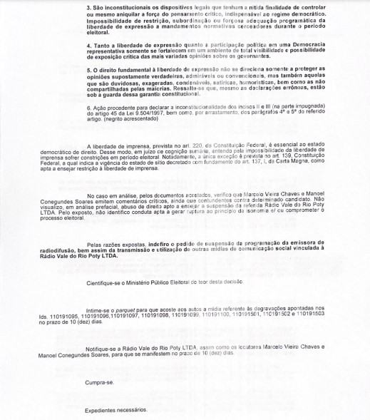 Segundo o documento do Ministério Público, a Rádio Poty estava “veiculando opinião desfavorável” contra o candidato do PT, Luíz Inácio Lula da Silva.