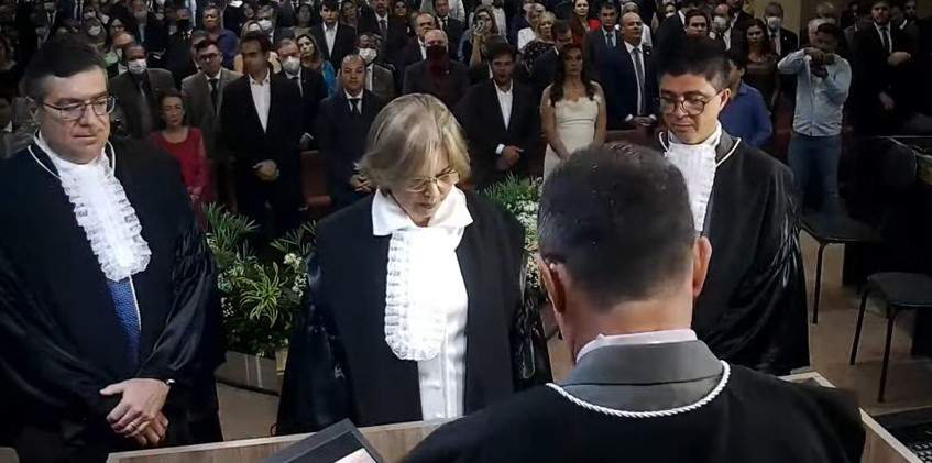Antes de sentar na cadeira da presidência, a desembargadora Fátima Bezerra fez o juramento diante do desembargador Leandro dos Santos. “Assim prometo”, respondeu na solenidade.