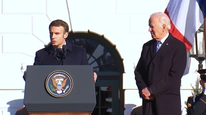 Macron acrescentou que as “democracias em ambos os lados do oceano estão sendo abaladas pelas mesmas dúvidas quanto à nossa capacidade de sermos fortes e eficazes quando se trata dos desafios compartilhados”.