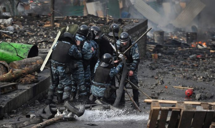 Em uma sala no leste da Ucrânia, jovens se sentam em uma longa mesa repleta de laptops, com os olhos grudados na televisão, a um braço de distância.