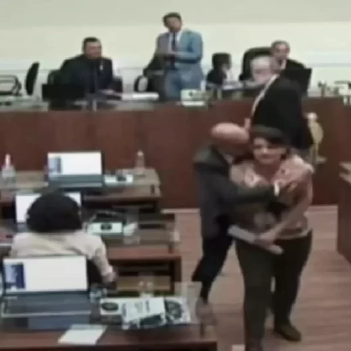 O vereador Marquinhos da Silva (PSC) foi filmado hoje à noite assediando uma colega, a vereadora Carla Ayres (PT), durante uma sessão da Câmara Municipal de Florianópolis. A política publicou a gravação nas redes sociais com uma mensagem de repúdio. Em nota compartilhada no Instagram (leia a íntegra abaixo), Marquinhos disse que o ocorrido foi um “erro”.