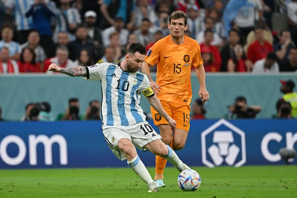 Messi em ação contra a Holanda, pelas quartas de final