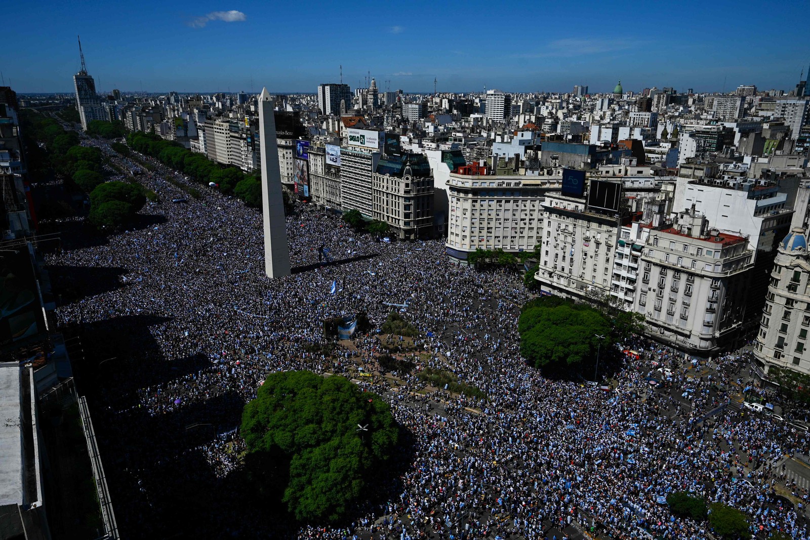 Milhares de argentinos já aguardam na Praça da República, em Buenos Aires, para a comemoração do título da Argentina na Copa do Mundo. A celebração, que está marcada para 12h desta terça-feira, vai acontecer no Obelisco e os jogadores passarão pelo local em cima de um ônibus.